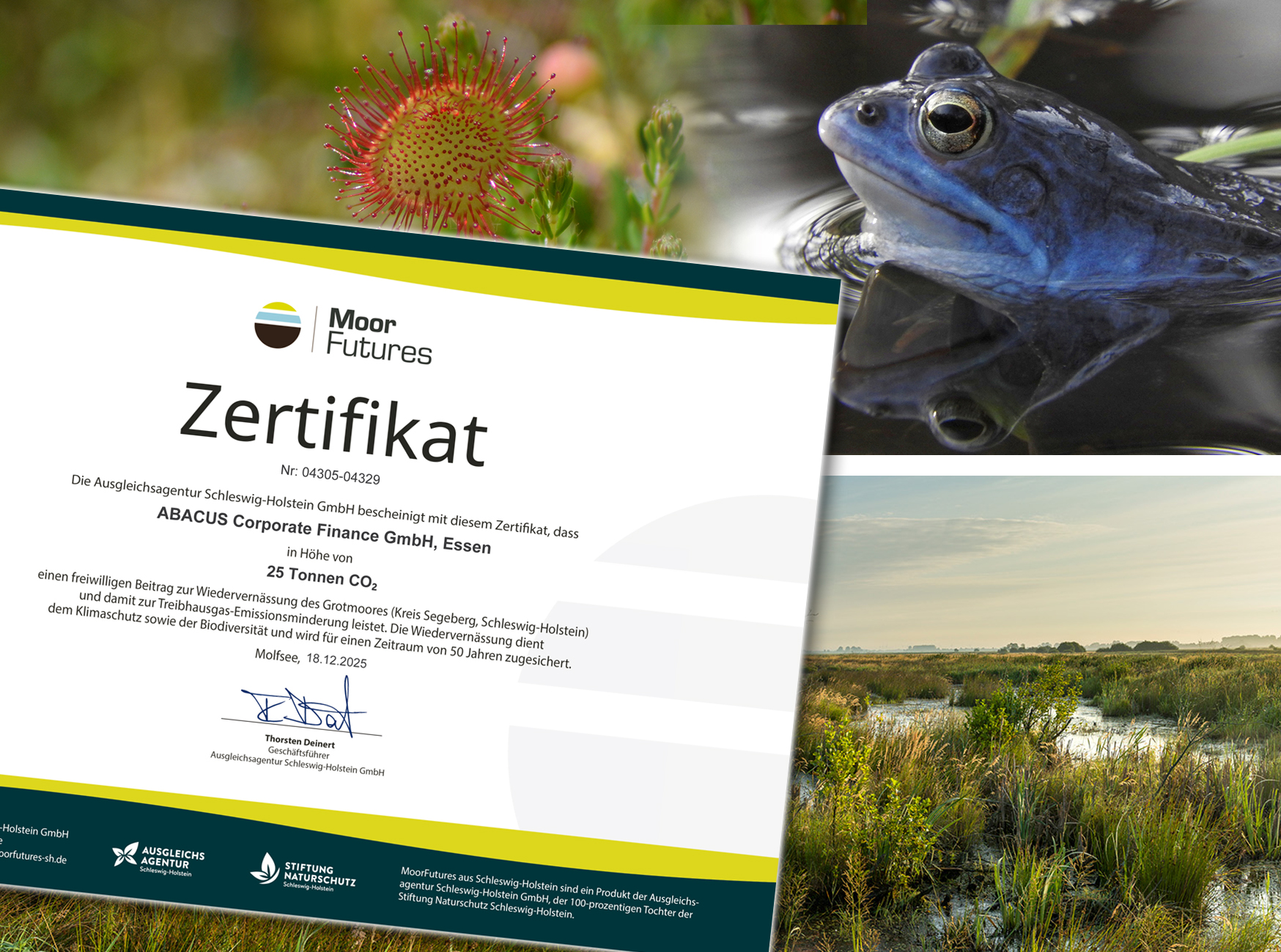 Wir sind fest entschlossen, unseren ökologischen Fußabdruck zu reduzieren und setzen unser Engagement für eine nachhaltige Zukunft konsequent fort. Daher knüpfen wir an unsere bisherigen Bemühungen an und unterstützen auch in diesem Jahr gezielt die Renaturierung einer wertvollen deutschen Moorlandschaft.